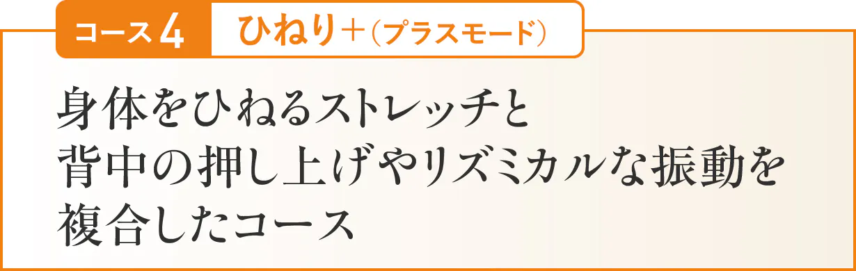 ※コース①の強めのモードになるので、筋力が弱い方や体力がない方、高齢の方は通常のコース①をご利用ください。