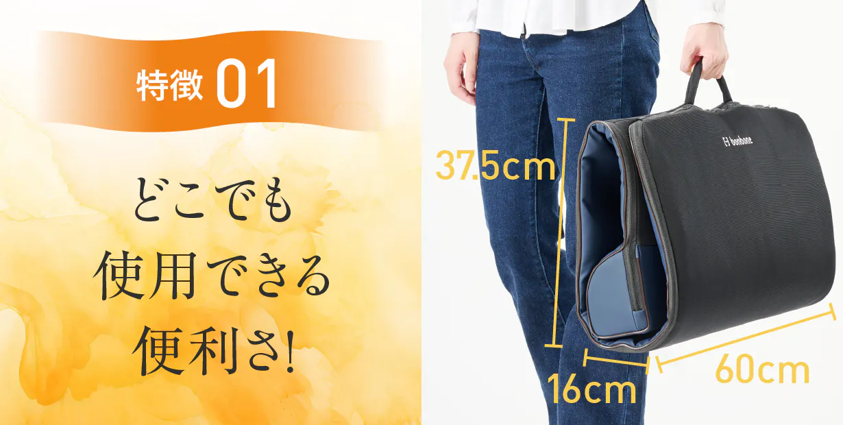 コンパクトで持ち運び可能なサイズの為、いつでもどこでも使いやすく、自宅だけでなく、出張先や旅行先など場所を選ばず手軽に体感できるのが特長です。