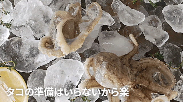 イイダコも厳選した鮮度の高いものを丁寧に3度洗いし、清潔に瞬間冷凍。たこの醍醐味であるプリプリ食感も維持しています。