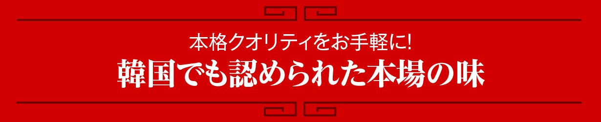 そこで私たちは、本場でも受け入れられた味をみなさんに届けたいと『こだわりの厳選素材』と『現地の味をそのまま再現する製法』を追求しました。真の韓国料理好きでも、本場の味と違うといったがっかり感を感じずお楽しみいただけます。