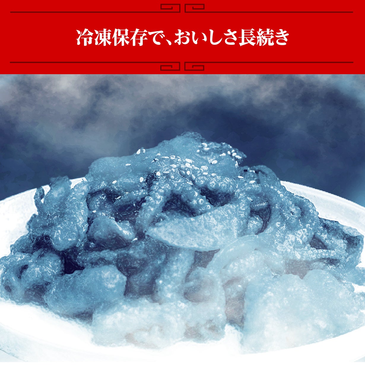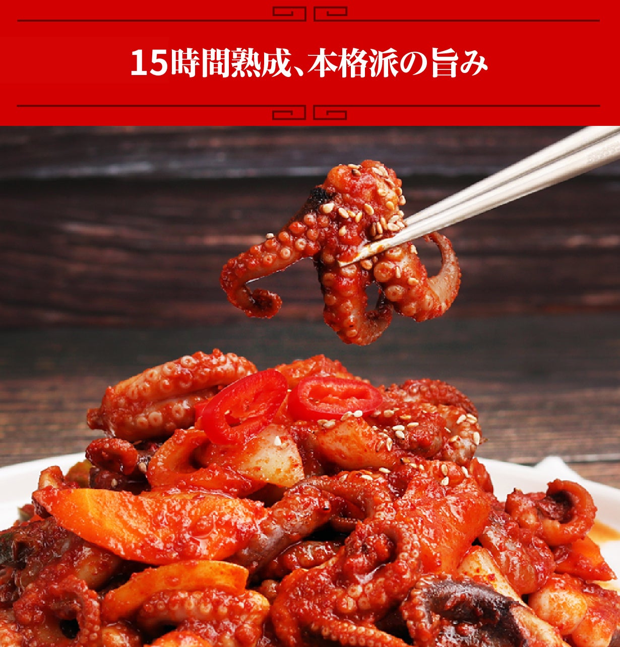 本場韓国でもリピーターを生み出す独自の厳選素材!冷凍、なのにイイダコのプリプリ食感を楽しめる。冷凍保存可能なので賞味期限も安心。