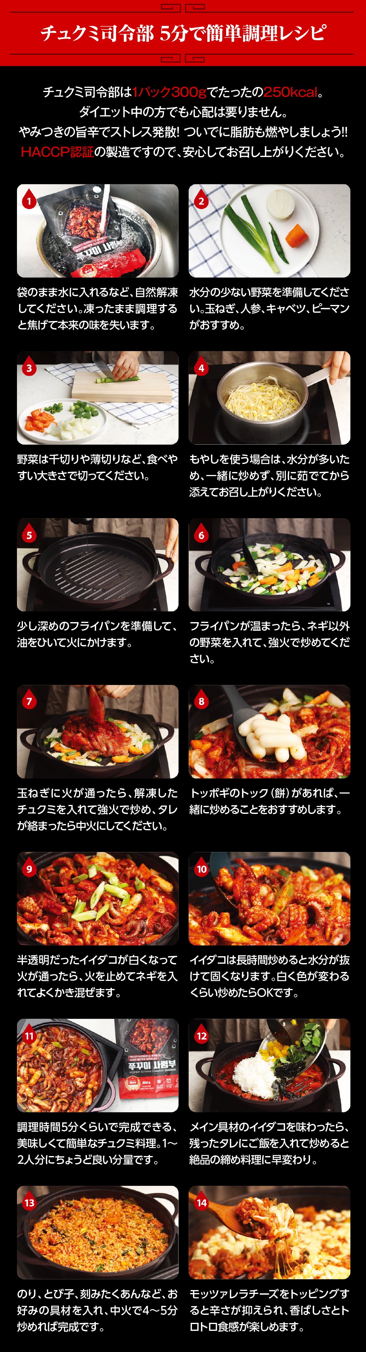 チュクミ司令部は2016年の販売から累計100万個以上を販売し、みなさまに愛されてきました。辛さの決め手となる唐辛子の選定から本場のおいしさを届けるための冷凍まで徹底的にこだわっています。本場韓国で約10年にわたって愛されてきたこの味を日本のみなさまにお届けできることを嬉しく思います。