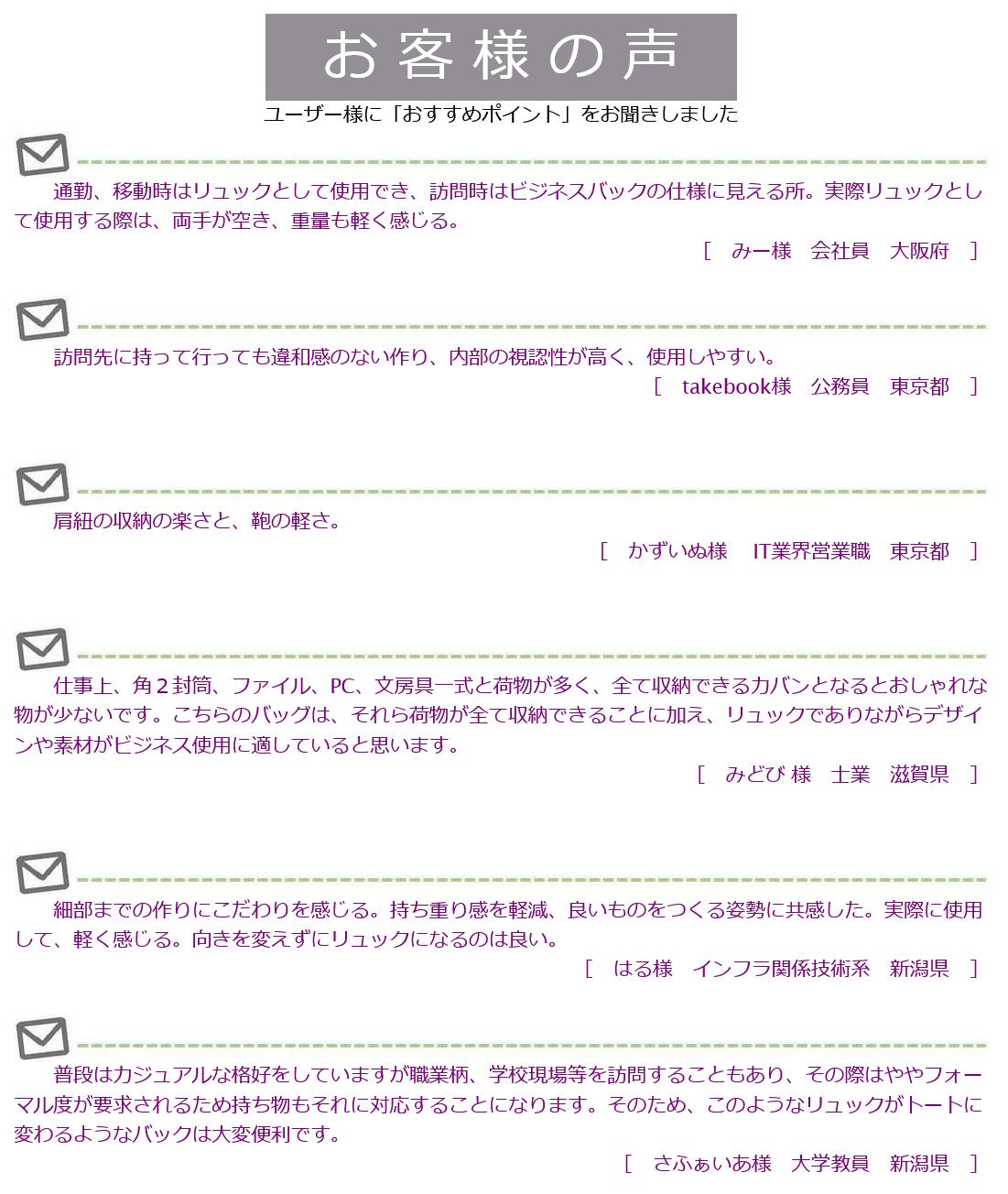 2024/04/25 12:30おかげさまで、本日最終日を迎えました。23:59マデです。ご検討いただけますと幸いです!さて、最終日に「開発のあゆみ」をご紹介です。この「トートリュック」はユーザー様のご希望から2019年に企画をスタート。ですが・・・迷走に迷走を続け、(*くわしくは⇒ こちら)昨年2023年版でやっと商品化。今回はアップデートした2024年版になります。間に、コロナ禍と急激な物価高もありましたが、迷走の最大の理由は「ヨコ型」のリュックは超難題だ、ということ。------------------------------------A4ファイル・ノートPCの出入れがスムーズで かつ、背負っても横方向のボリューム感を抑えられていること------------------------------------これを実現するのが本当に難題でした。図は、これまでの試作品等です。(ここに載せられない「ボツ」サンプルは片手で収まらない数です)ビジネスシーンでのリュック使用は今ではかなり普通になっていますが、訪問先にきちんとしたビジネスバッグが求められる場面も多いかと思います。その一方で、機器や書類を持ち歩く負担に身体が悲鳴をあげている。そのような方にぜひ、この「トートリュック2WAY」を試していただければと思っております。最終日どうぞよろしくお願いいたします! もっと見る
