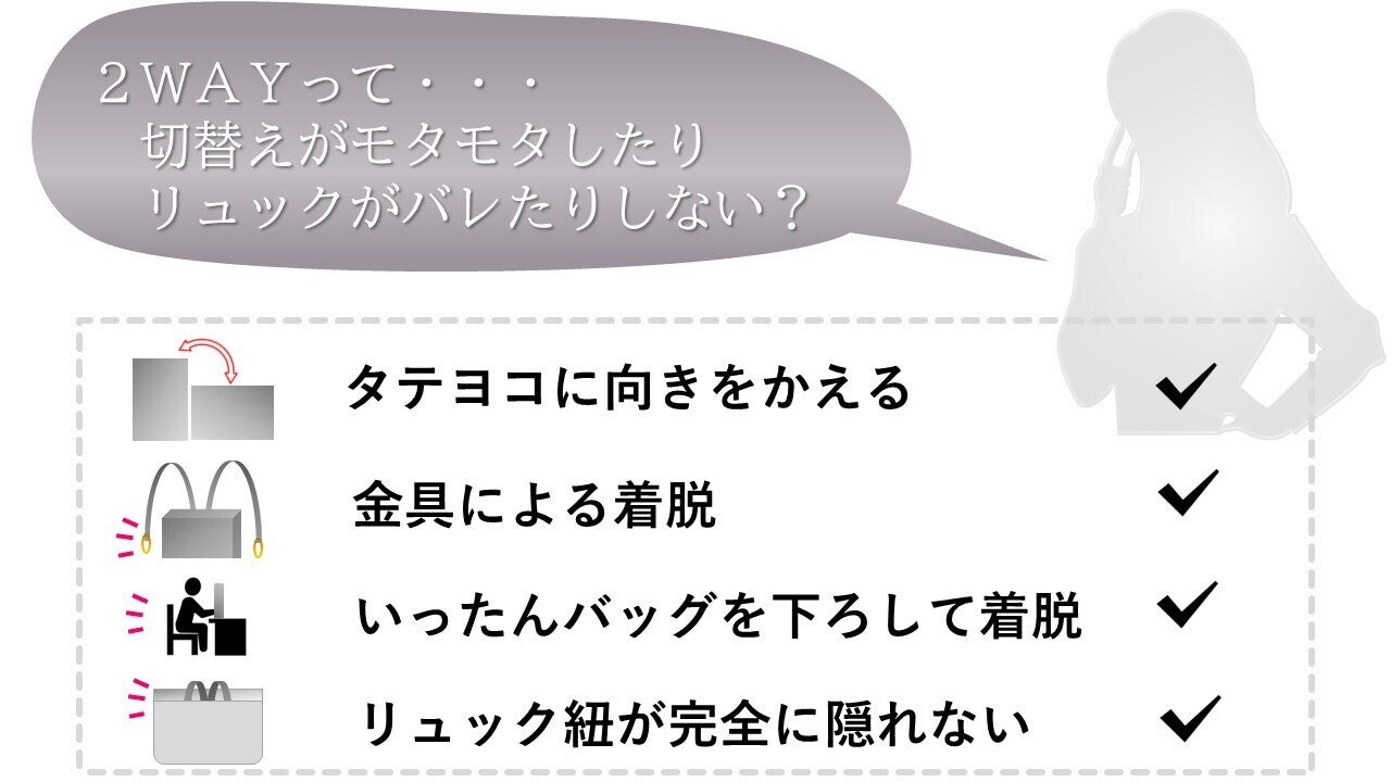 2WAYにありがちな "モタモタ" を解決 「移動はリュック、訪問先ではお仕事バッグ」をスマートに実現