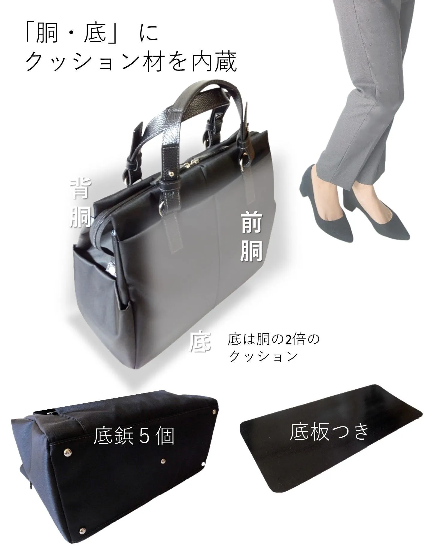 ・PCポケット・バッグ本体の「 クッション材 」は日常使用シーンでの保護仕様となっております