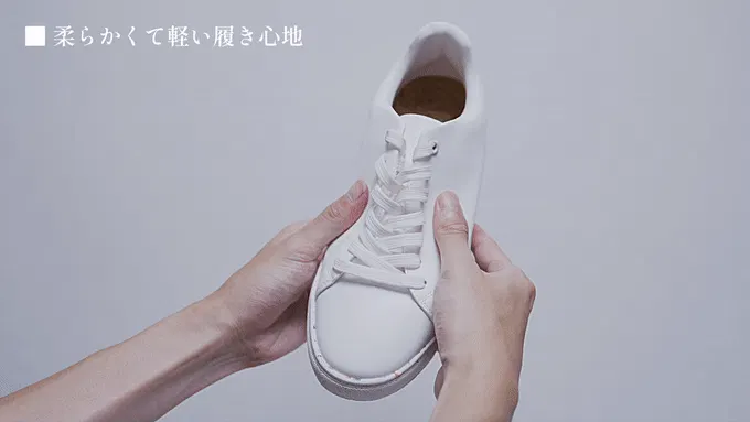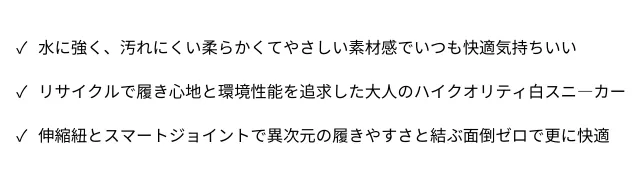 本作は「とことんシンプル」に且つ「上質な大人の白スニ」を目指し「履き心地と快適さ」更には「水に強い」リサイクル素材で作った白スニの「自信作」です。
