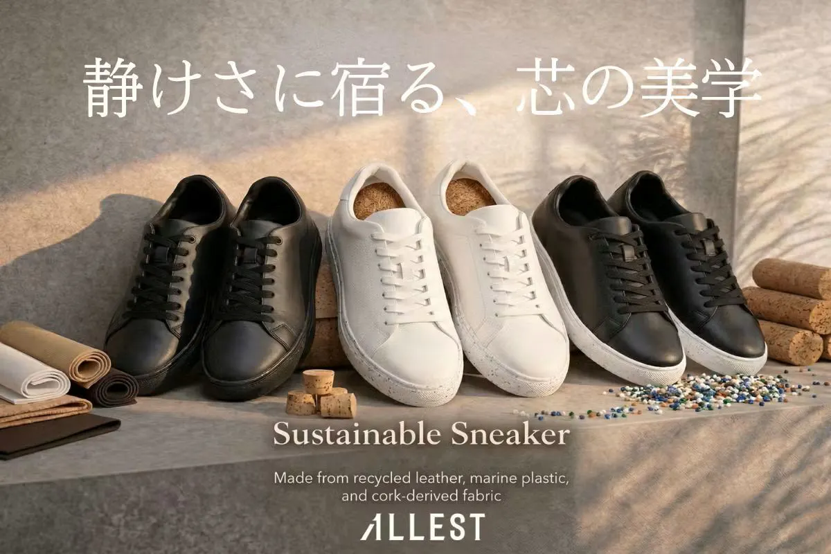「ALLEST 白スニーカー」のデザインは、普段着からセットアップ合わせまでどんなスタイルにも合わせやすく、更に「品を上げる」質感と素材。そして「履き心地」にとことんこだわって、地球環境にも配慮した「サステナブルスニーカー」です。