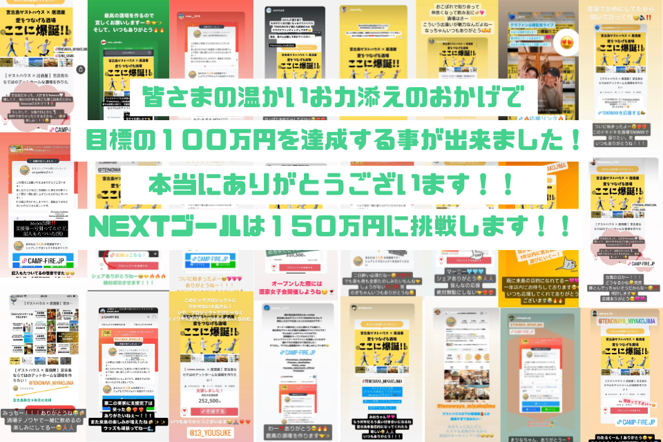 今回、店舗改装費用・増築費として目標金額を100万円と掲げておりましたが、皆さまのご協力により更なる視点で設備や運営に注力する事が可能となりました!