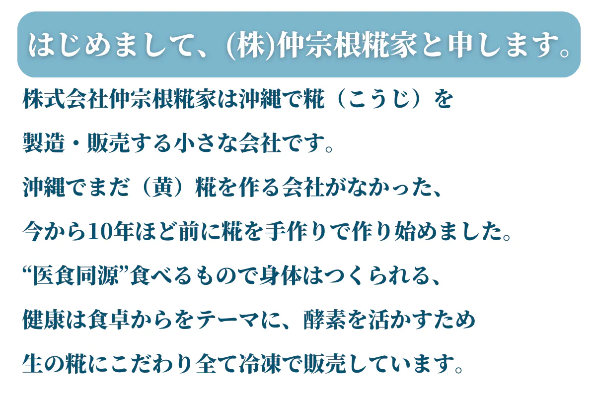 当時は沖縄で糀を作る会社がなかったので、なければ自分達で作ろうとはじまった仲宗根糀家ですが、