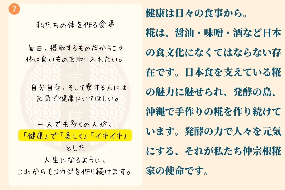 一人でも多くの方に糀の魅力を知っていただき、内側から元気で美しくなってもらえるように