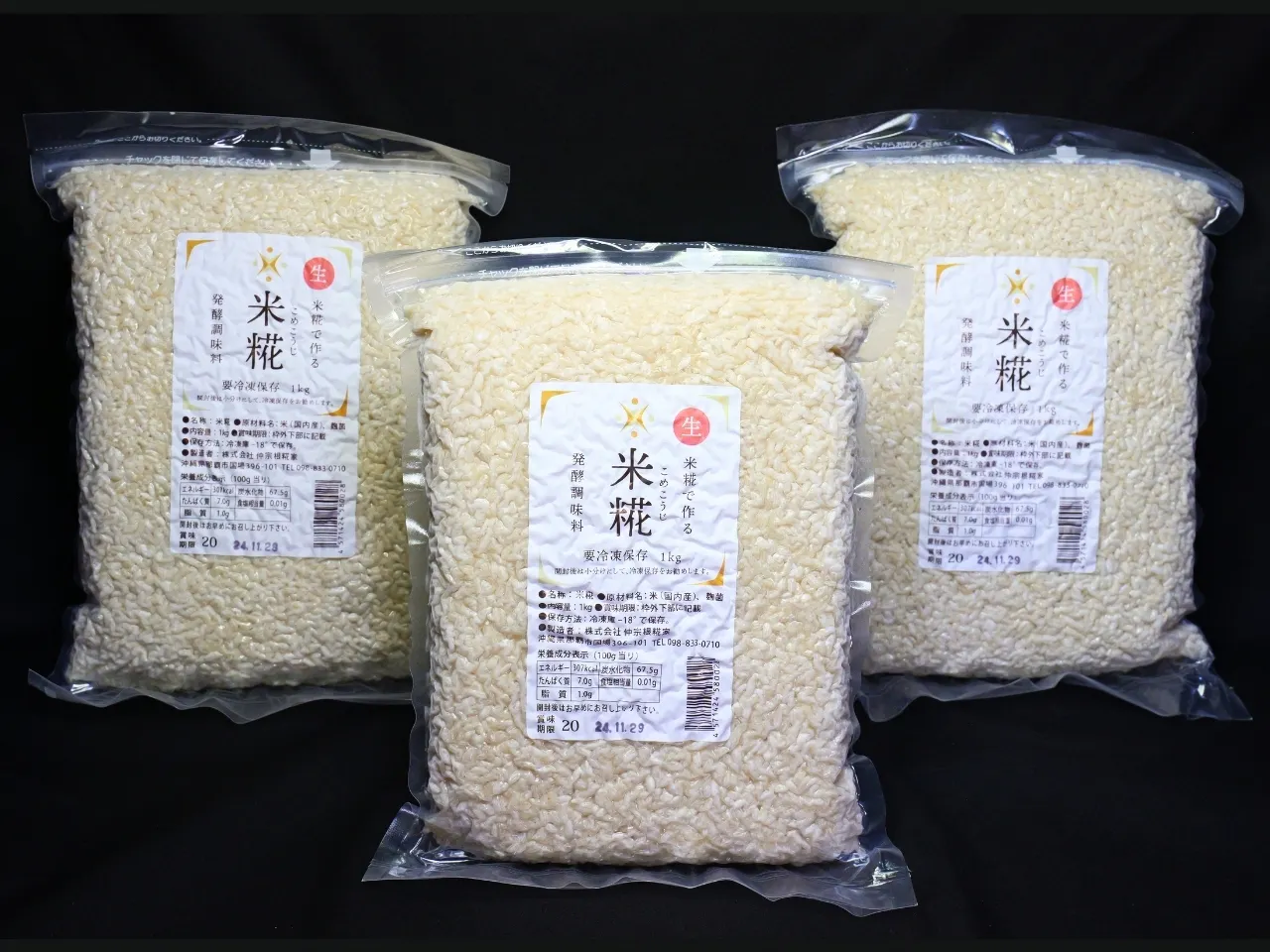 ・商品名:米糀、名称:米糀、内容量:1,000g、保存方法:冷凍(-18℃以下) 消費期限:6ヶ月(冷凍保存)