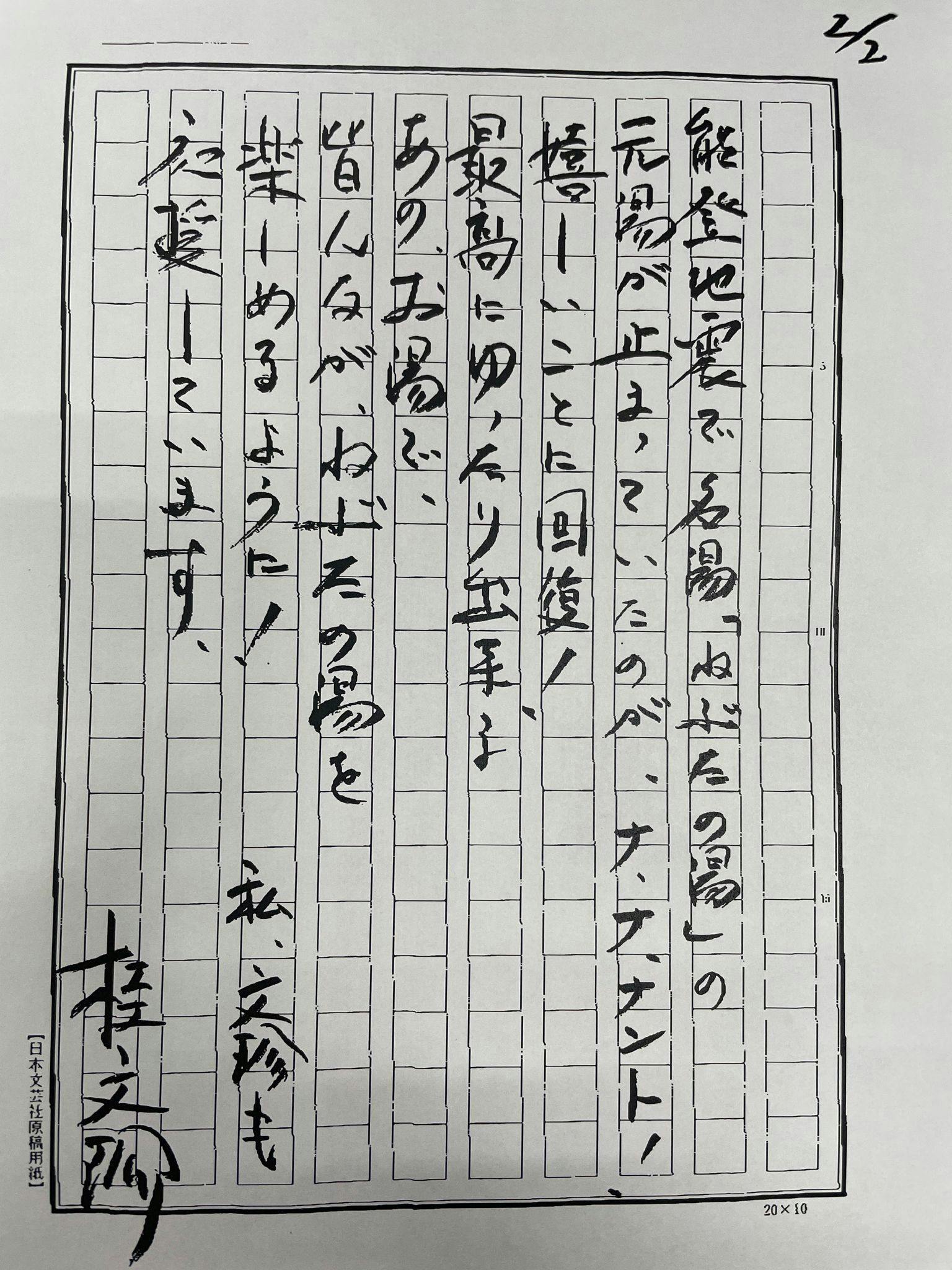 桂文珍さんから直筆で応援メッセージをお預かりました。