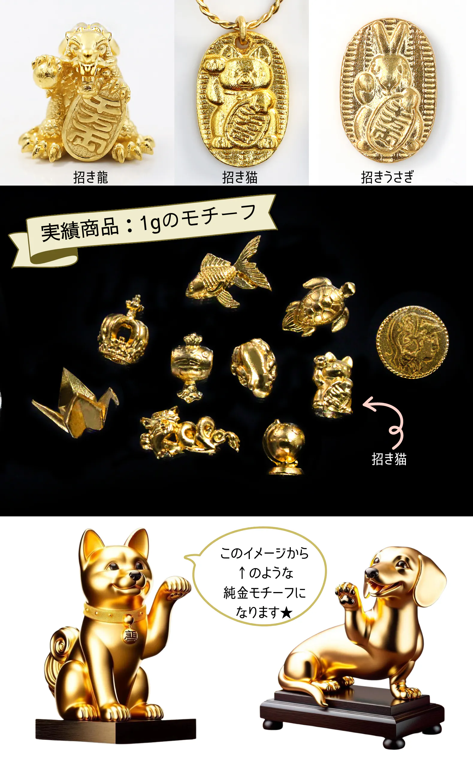 純金の“招き犬シリーズ”を作りたい