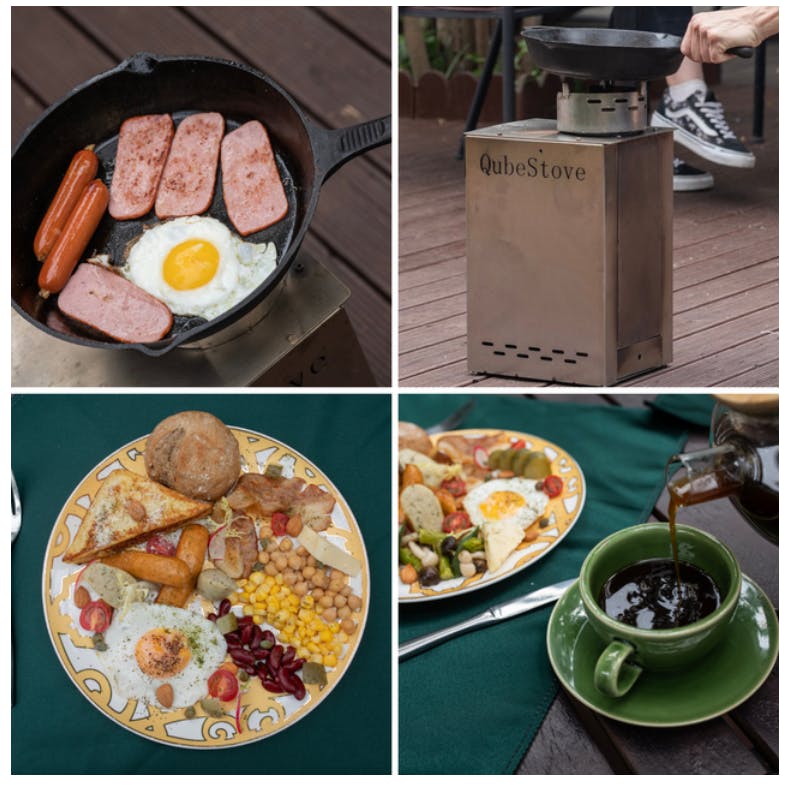 Qubestoveは、ステーキ、焼き野菜、ローストチキン、グラタン、パン、スペアリブ、焼き芋などなど、これ一台あればフルコースで楽しめる優れものです。