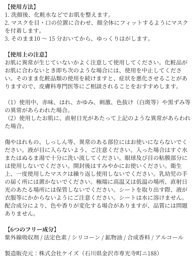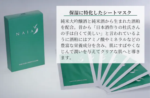 奥能登で生まれた酒粕を配合した酒粕フェイスマスクは、保湿に特化したシートマスクです。