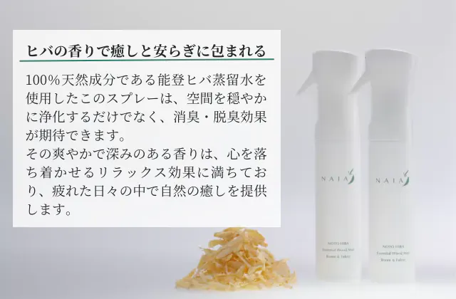 このスプレーは、その歴史ある木の力を活用し、現代の生活空間に古の知恵をもたらすアイテムとして創り上げられました。