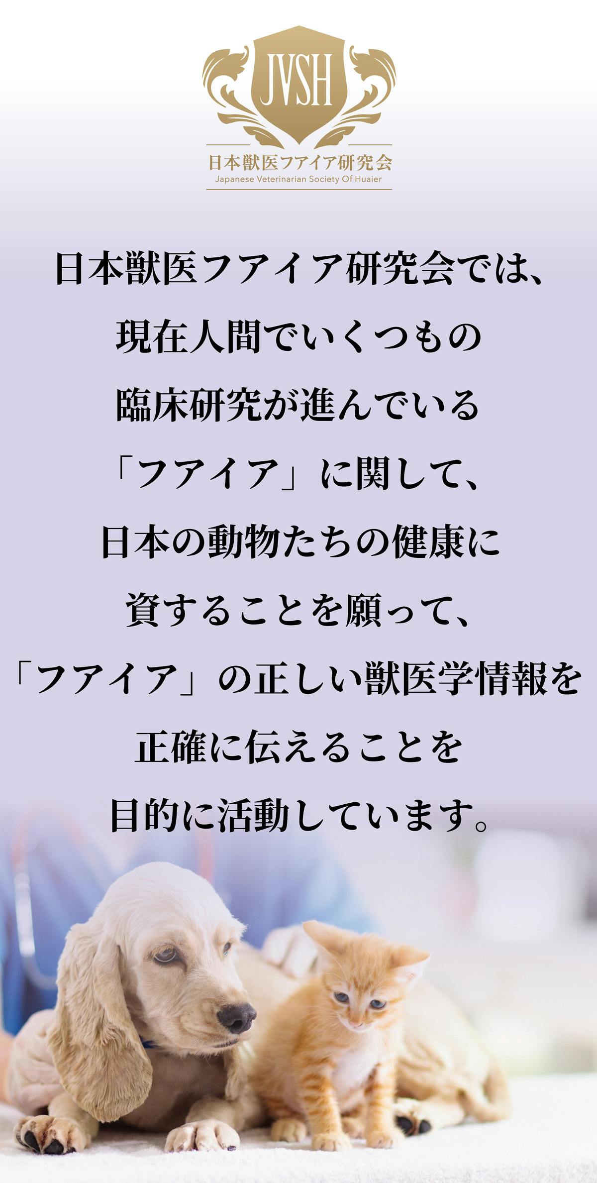 犬猫の免疫機能をフアイアが調整し、犬猫の体に対し未知なる可能性を秘めている事がわかり始めました。しかし、これを一般化させるためには、より具体的な効果や副作用についての研究と検証をし、科学的データで証明し、信頼性の高い情報発信をしていくことが非常に重要だと考えています。