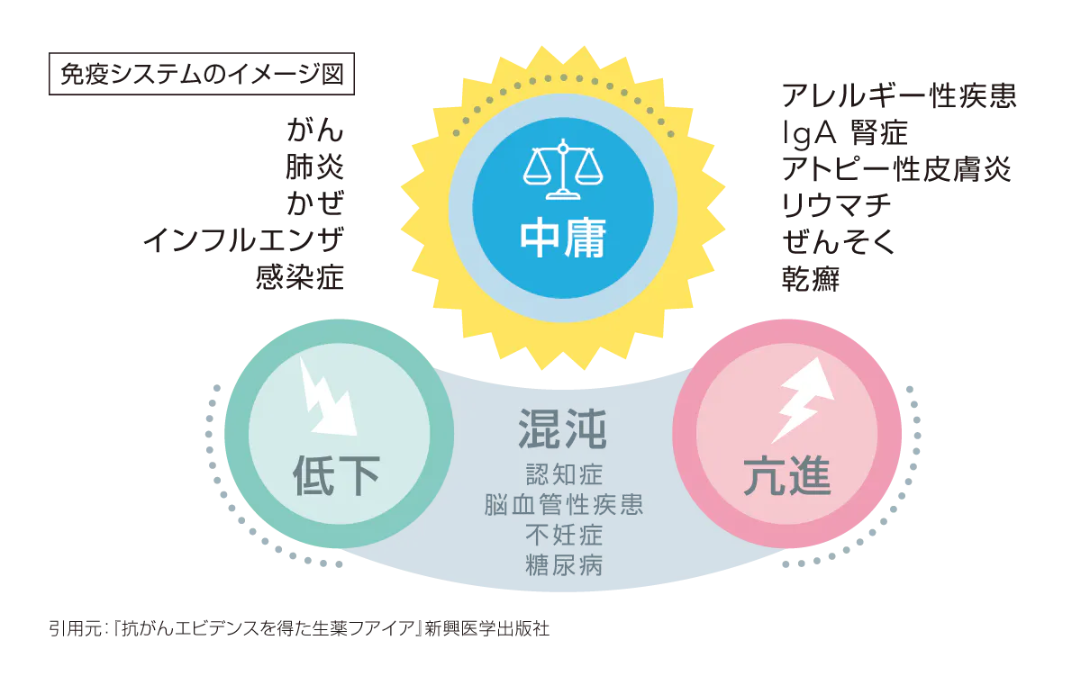 それぞれのタンパク質に対して、免疫機能が亢進していれば下げる、低下していれば上げる方法が必要です。