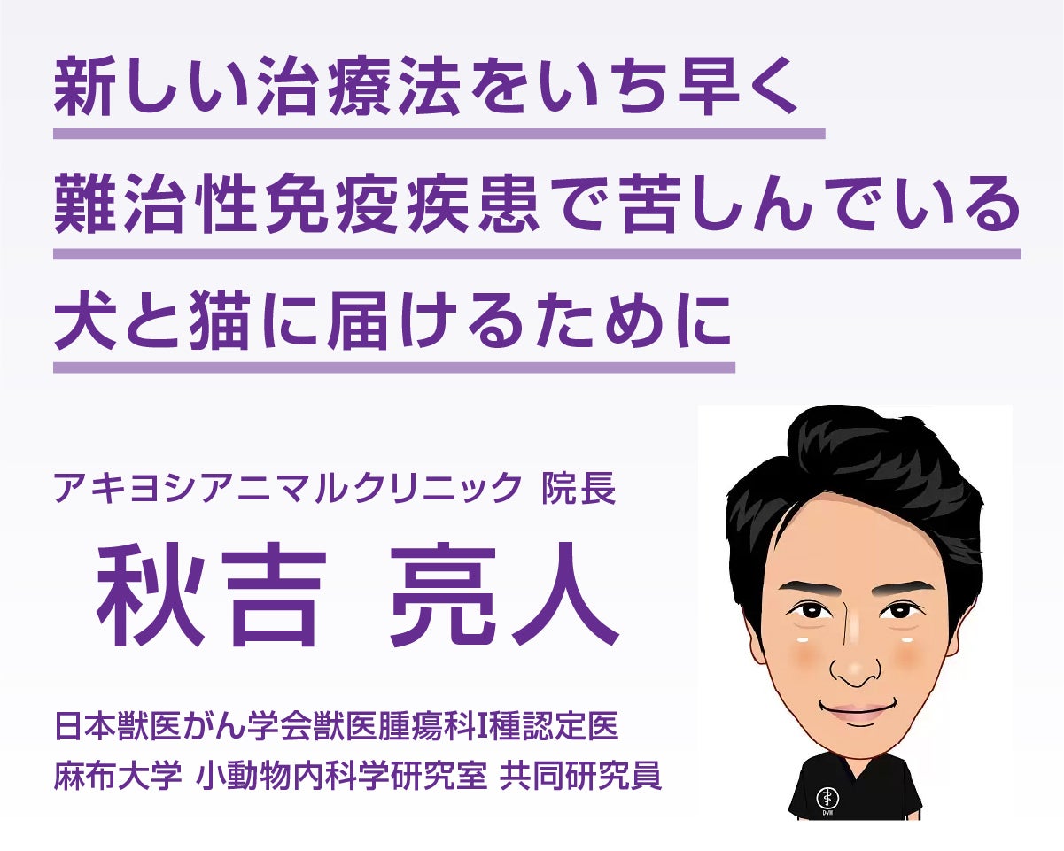 この新しい治療法をいち早く難治性免疫疾患で苦しんでいる、犬と猫に届けるためにも、クラウドファンディングへのご協力をお願い申し上げます。