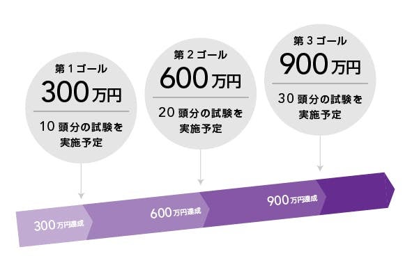 ★第3ゴール 総額900万を予定 →30頭分の試験を実施予定
