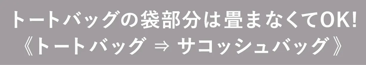 サコッシュバッグの中に収納されているトートバッグの持ち手を引っ張れば、サコッシュバッグからトートバッグに早変わり!