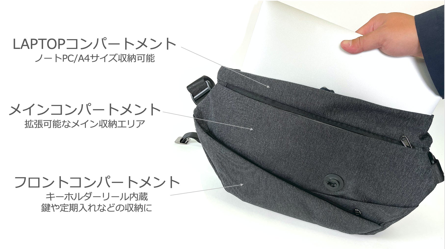 13インチノートPCや一眼カメラなど、サイズ的に少々かさばるアイテムも運べる、容量可変式の「SEKKEI MX-sling」の新色としてダークグレーが登場!