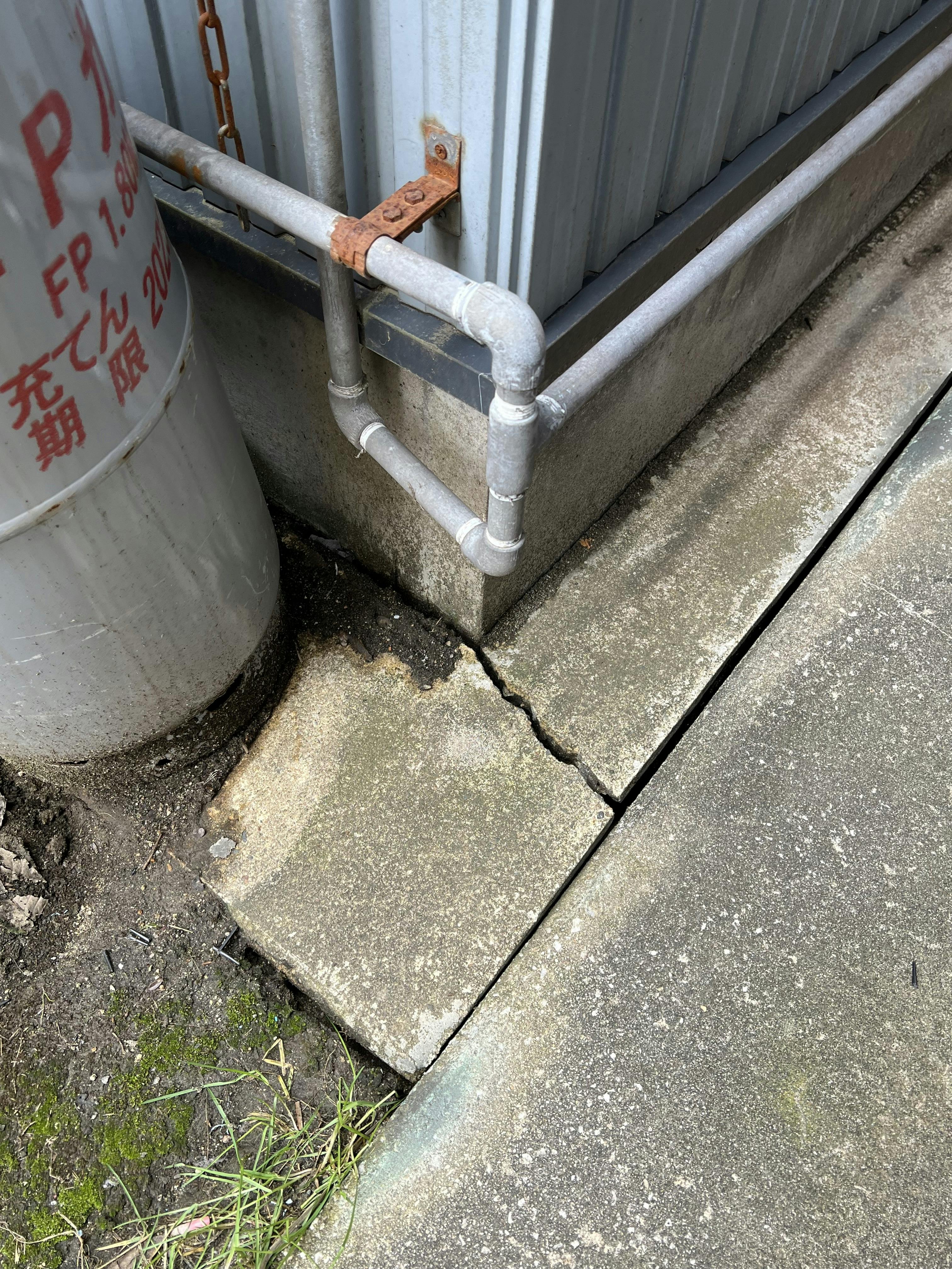 能登半島地震の影響で、パン工場が地盤沈下し、最大22㎝傾いています。入口のドアも開かない状態です。