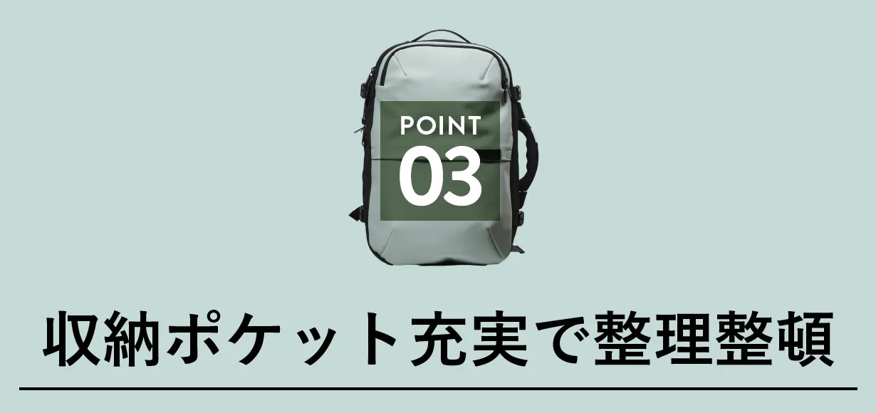 ヘッドフォン、メガネケースなどの収納に丁度いい、小物類の持ち歩きに便利な収納ポケットが付いています。