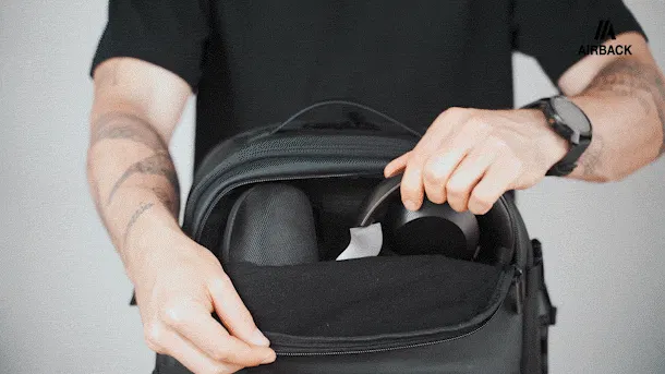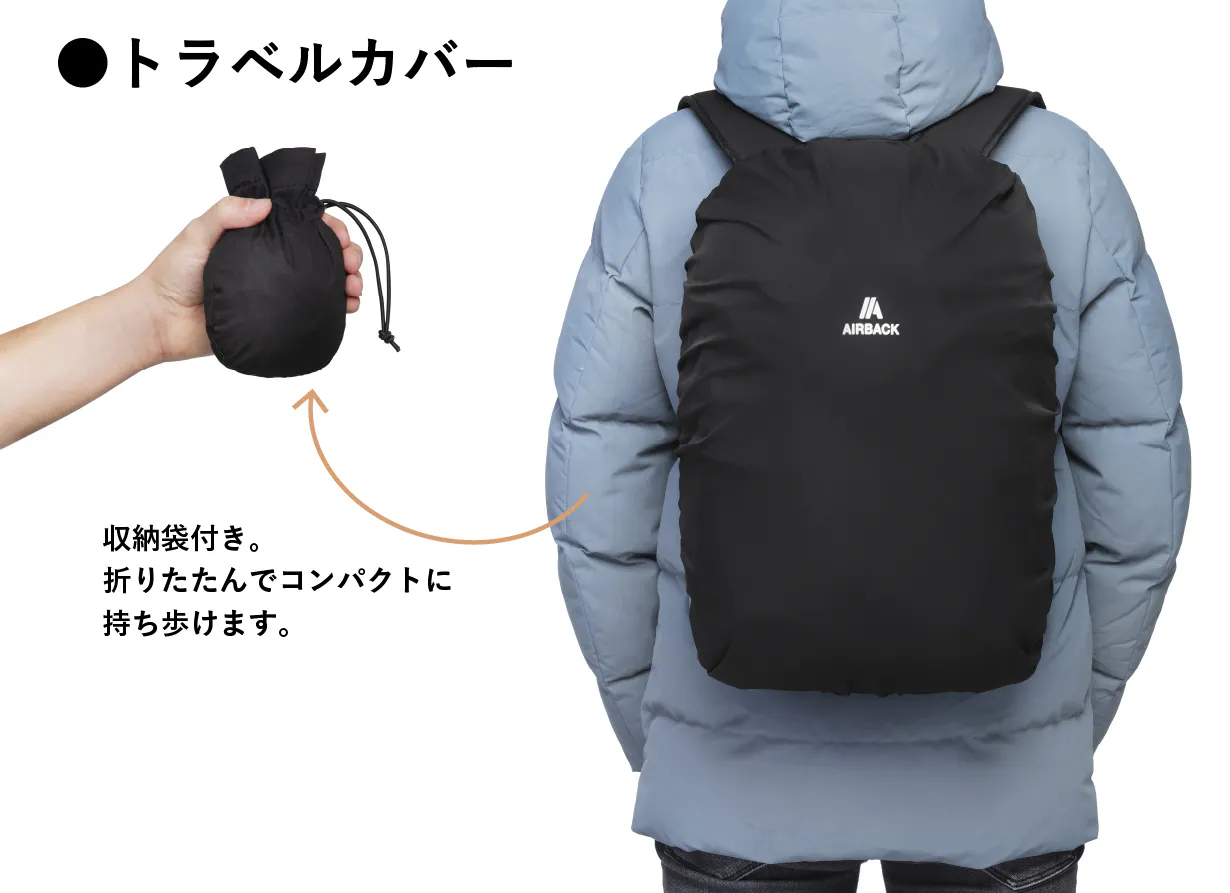 汚れなどからAIRBACKを保護するカバー。収納袋付きで、折りたたんでコンパクトに持ち歩けます。