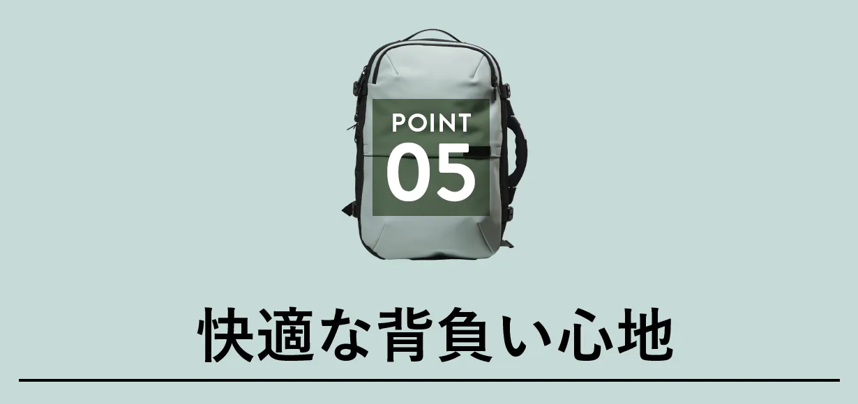 ソフトで通気性の良いパッドを使用したショルダーハーネスで、肩への負担を軽減。長時間背負っても快適です。