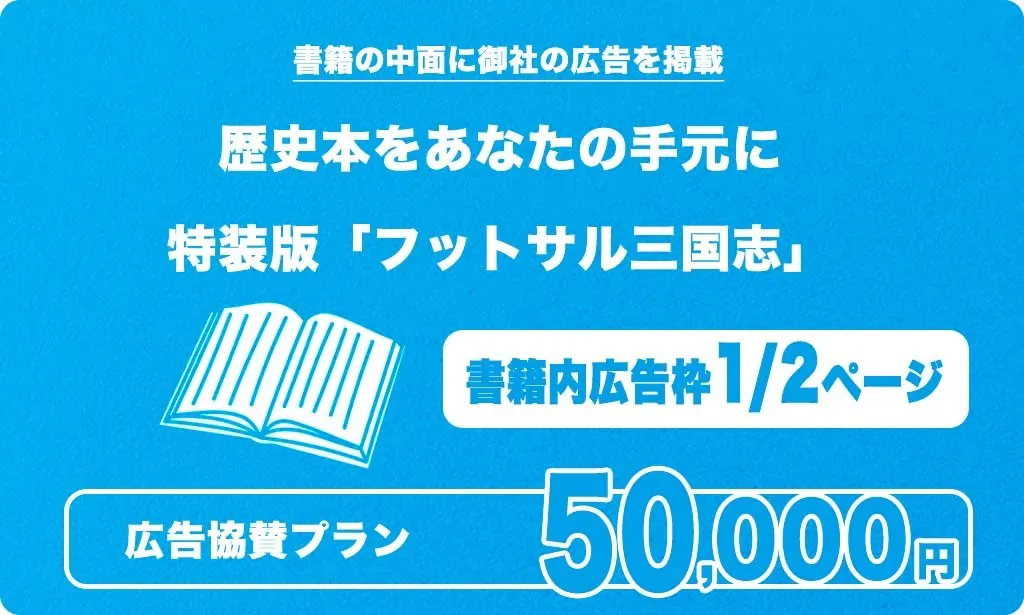 ・フットサル三国志内に広告枠(1/2ページ)をご用意します