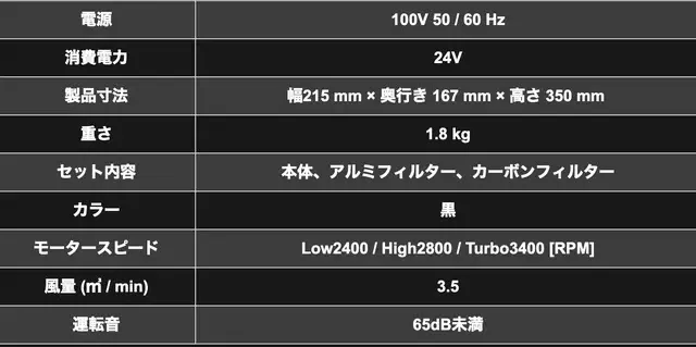 吸い込み口、ろ過ポリマーフィルター、排気口の直線構造の高圧風道で 煙や水分粒子をより早く多く捕らえることが出来る。