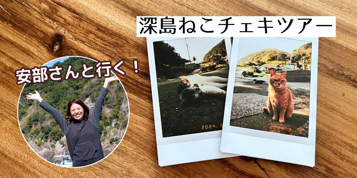 ・あべさんと一緒にチェキ片手に深島をめぐる限定ねこツアーです。自分が欲しい唯一無二のチェキゲットをお楽しみください。※宿泊代・深島までの交通費は含まれておりません。