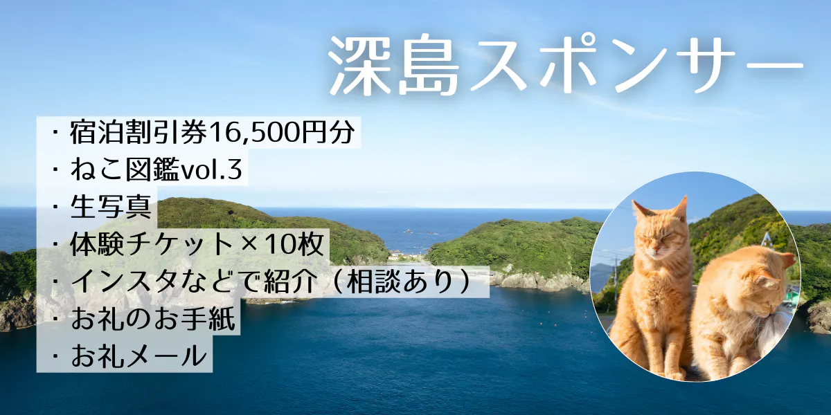 【リターンで体験】ねこ図鑑+深島体験チケット2枚セット(10,000円)