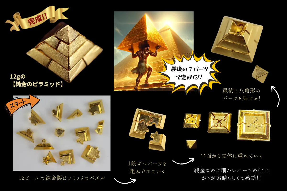 純金製品のJUNGOLDから、組み立て式のパズルのような“ピラミッド”が登場しました。無垢の純金製です。