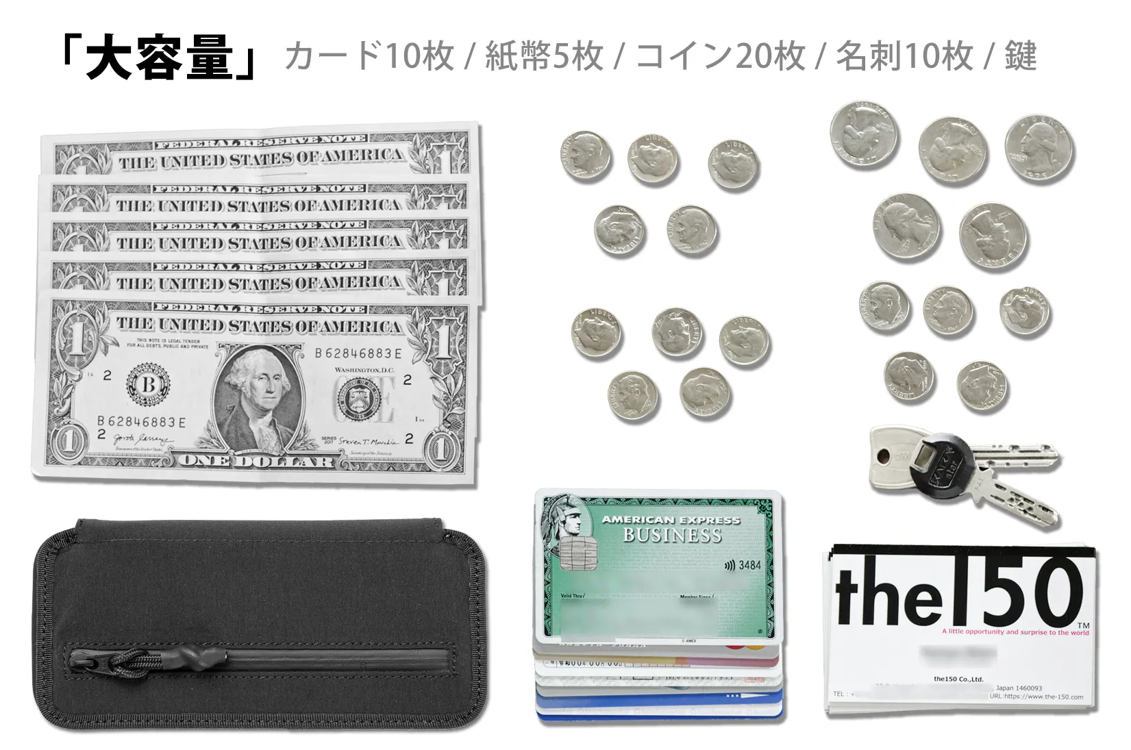 ※カード10枚、紙幣5枚、コイン20枚、名刺10枚、鍵が入る。