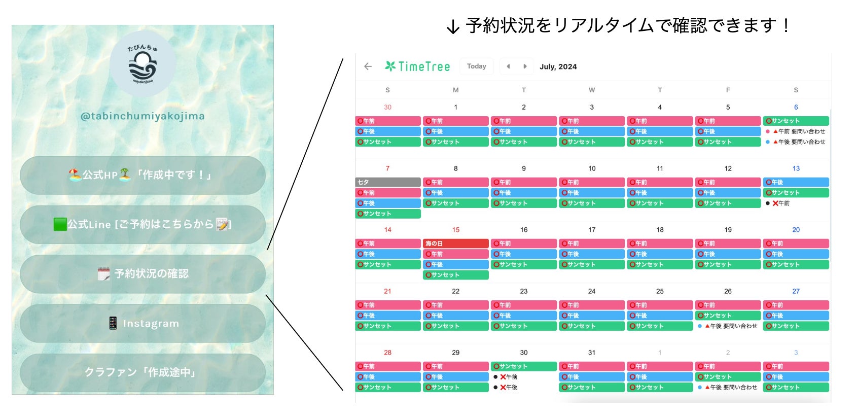 ★「HP」「公式LINE」「予約状況の確認」など、たびんちゅに関わる情報をまとめて掲載しているリンクもございます。