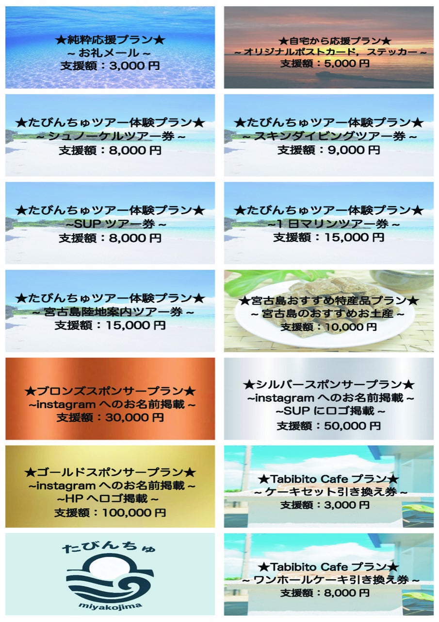→純粋応援プラン、自宅から応援プラン、宮古島おすすめ特産プラン、スポンサープラン(ブロンズ、シルバー、ゴールド)