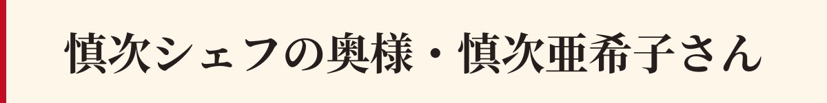 慎次亜希子(大島ノア)さんは、慎次シェフの奥様です。