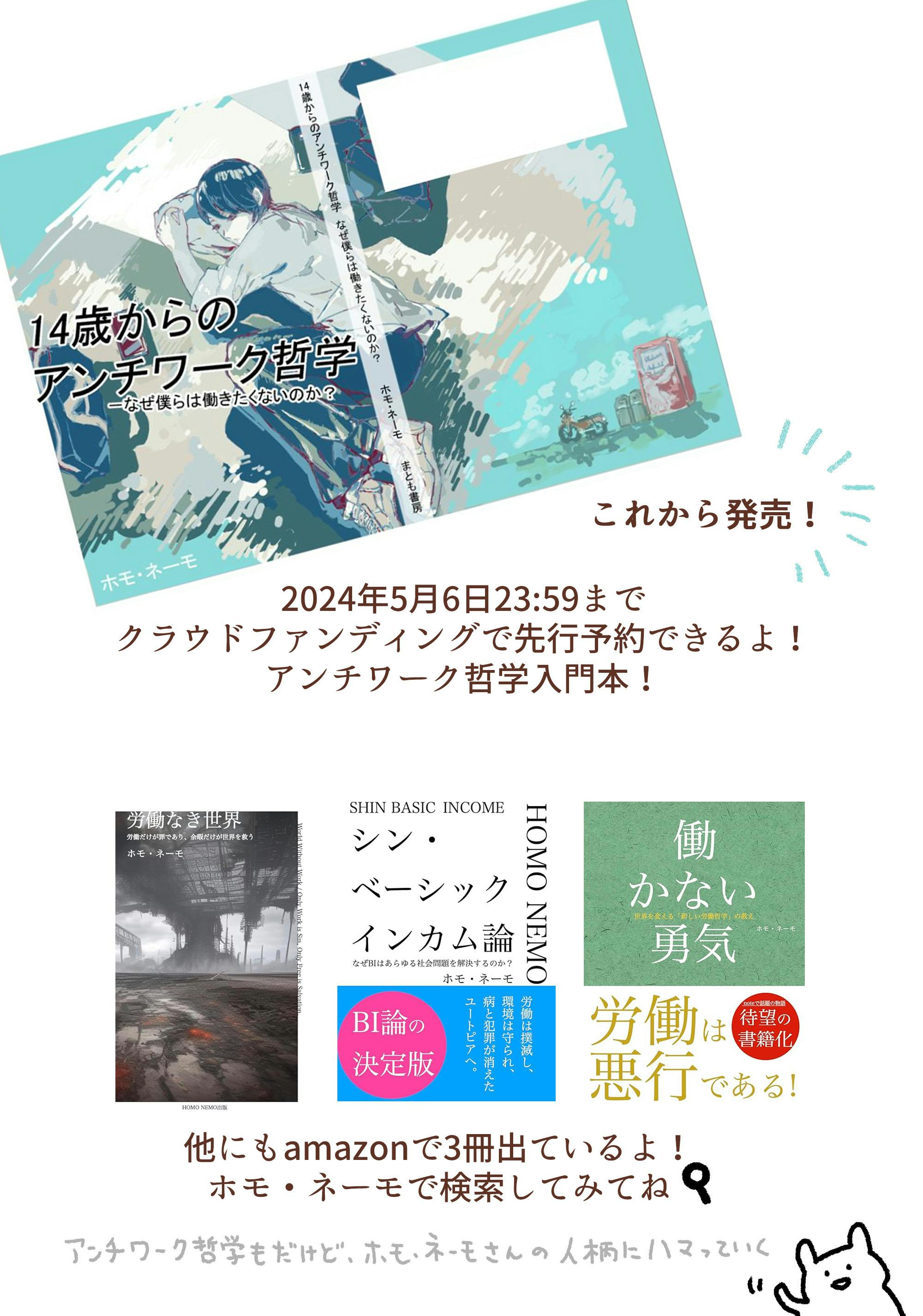 ・『14歳からのアンチワーク哲学 なぜ僕らは働きたくないのか?』出版プロジェクト byホモ・ネーモ に寄せて