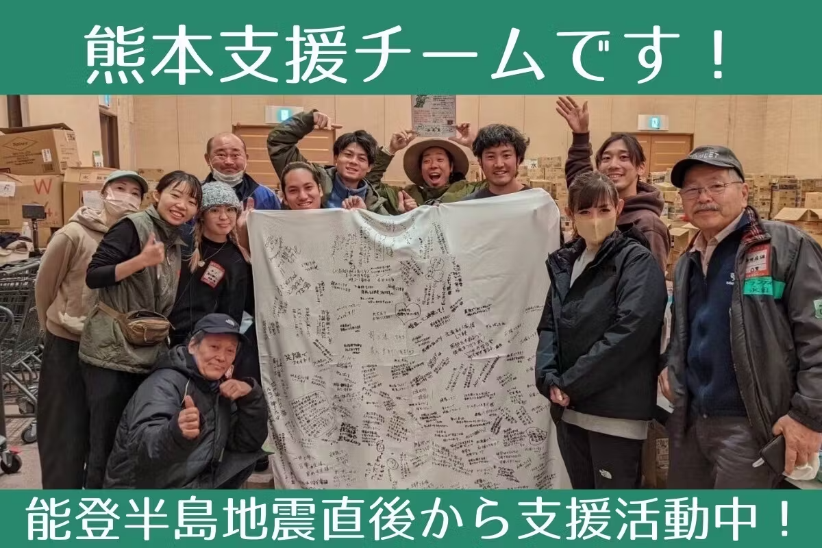 熊本に本拠地をおく民間災害支援団体「一般社団法人熊本支援チーム」です。東日本大震災を機に初めて被災地に入り、熊本地震(2016年)、熊本南部豪雨災害(2020年)など自然災害を支援。現在、令和6年能登半島地震の支援活動中。