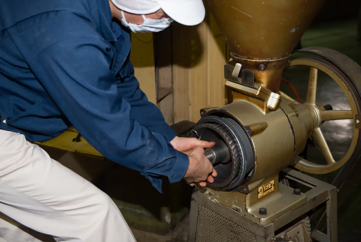 3度炒りでカラッと仕上げ、炒り立てを細かく粉砕。製造50年の熟練の技が、香ばしい香りをしっかり引き出します。