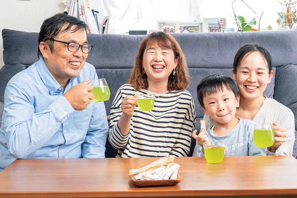 我が家は昔から、夕食の時に温かい緑茶を飲んでいます。ある時、カタログに掲載されていたご愛飲者の声に惹かれて、初めてまるごとさんかく茶を買ってみたら、家族みんな「色も綺麗だし、おいしいね~!」って気に入って。それまでスーパーのお茶から量り売りまで色々試してみたものの、「どうしてもこれじゃないとダメ!」というお茶にはなかなか出会えなかったんです。やっぱり、毎日飲むなら、おいしいお茶が飲みたいじゃないですか。こんな香ばしいお茶ってあんまりないですよね。おいしいから、飲みたくなってずっと続けて飲んでます。家族もお客さんも「おいしい!」っていうから、これは絶対おいしいお茶なんだと思ってます!