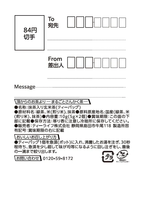 お茶より…「お茶」×「お便り」 お便りの形をしたパッケージにまるごとさんかく茶(お茶)を入れた商品