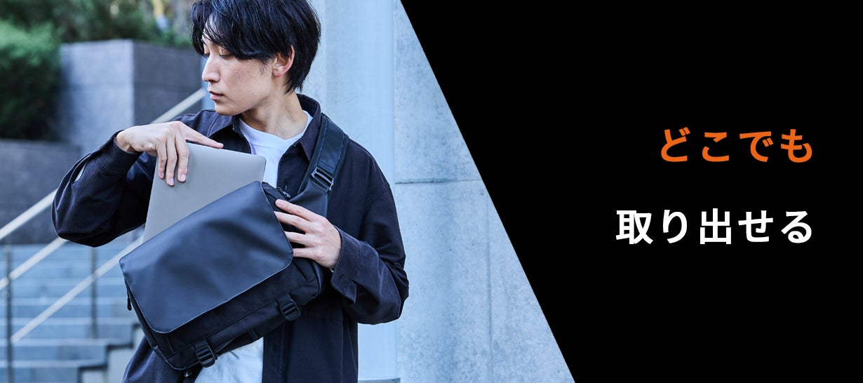 スリングバッグがPCに対応することで、気軽にPCを持ち出せます。
