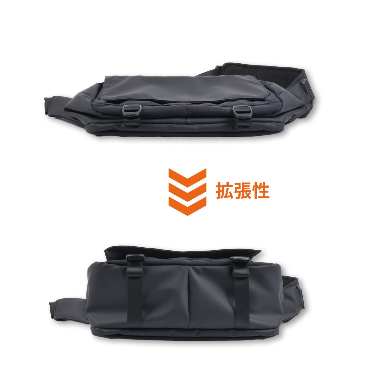PC対応でさらに進化した傷に強く汚れても簡単に綺麗になる。大人の日常使いに最適なスリングバッグ。