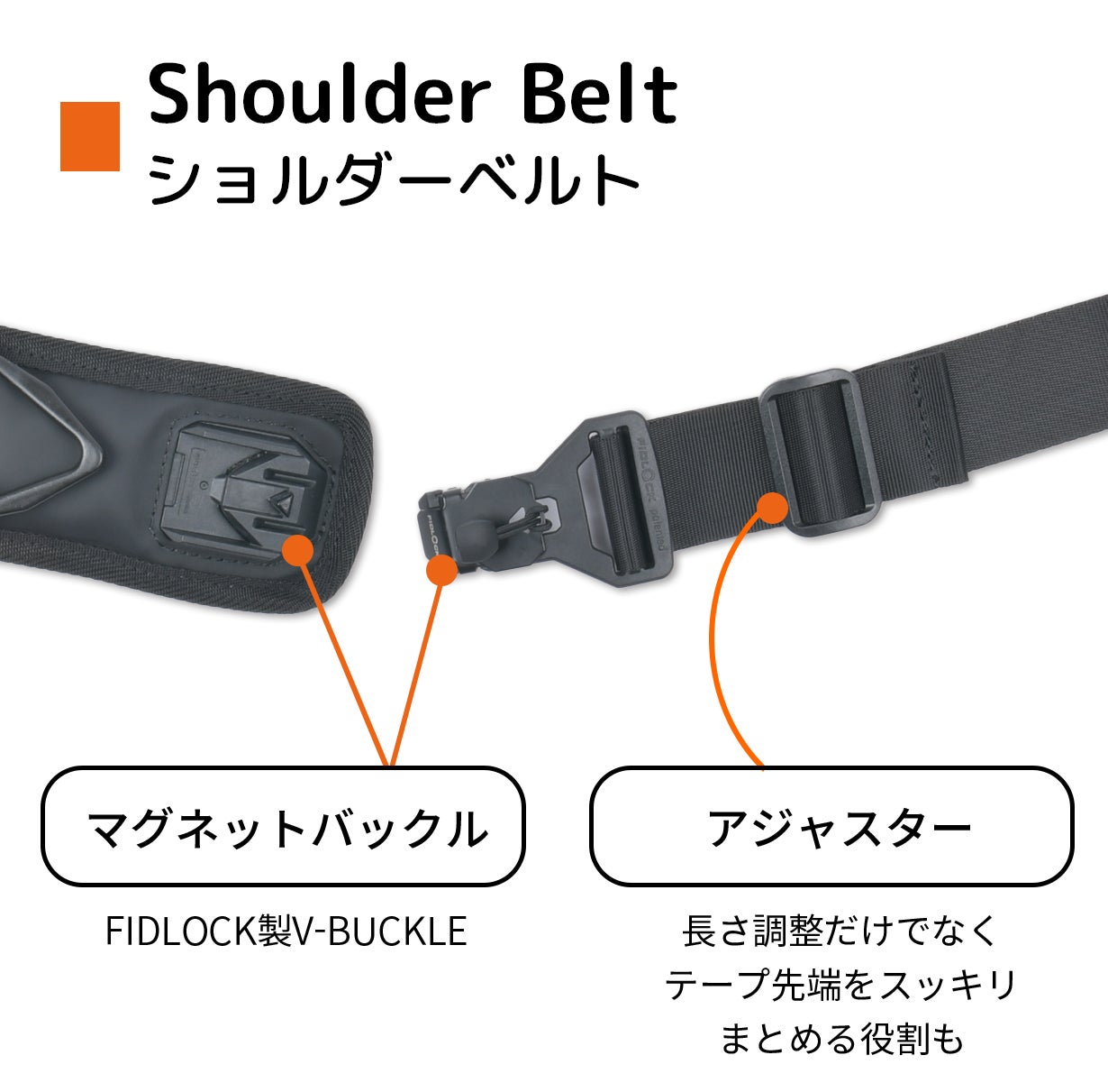 ショルダーベルトには、ドイツのパーツブランド【FIDLOCK】のマグネットバックルを使用しています。
