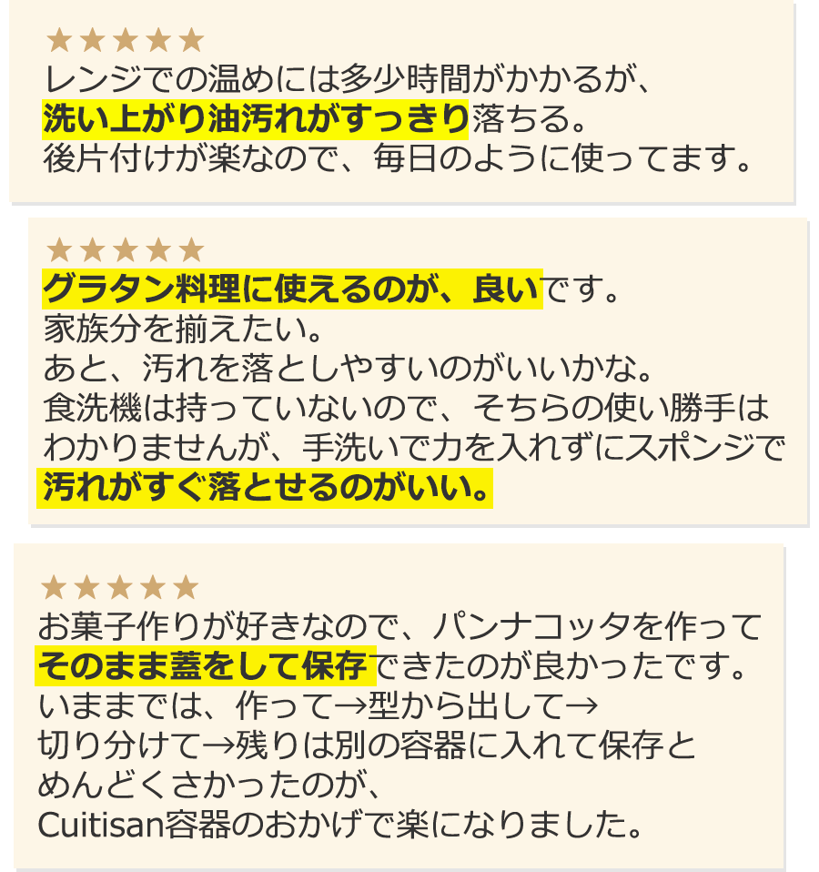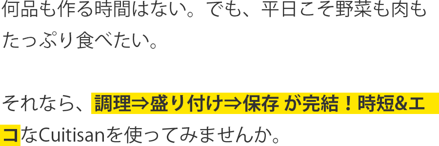 Cuitisanは、冷凍・冷蔵保存から電子レンジ、オーブン調理まで様々なシーンで使用できるからこそ、毎日 便利にお使いいただけます。