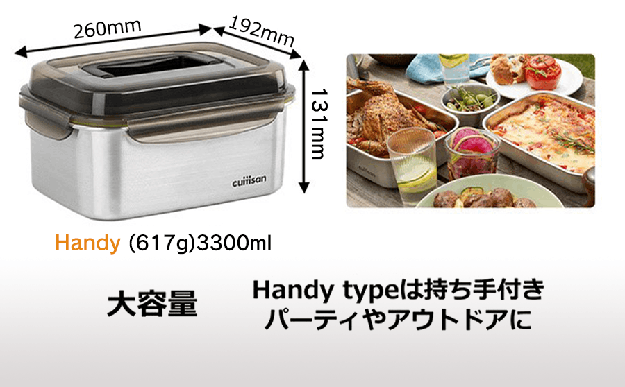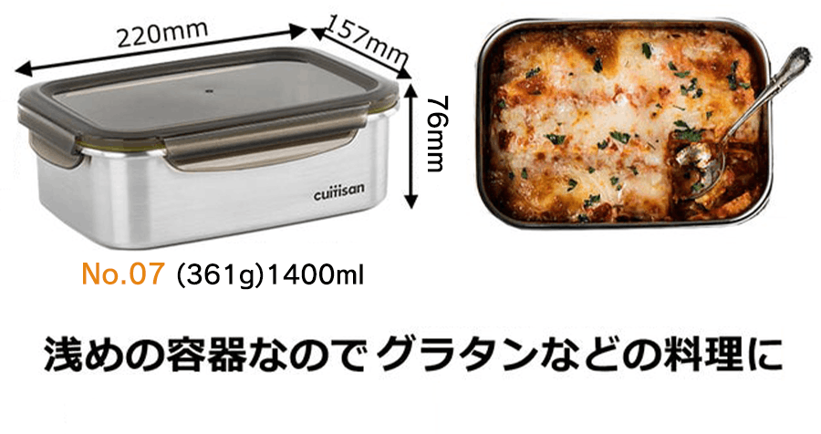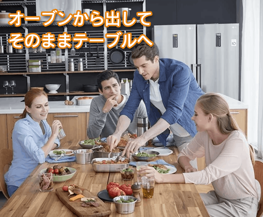 ステンレス容器なので、材料を保存しながら味付けでき、電子レンジやオーブンで魚料理、肉料理、パスタやグラタン等さまざまな調理が可能です。