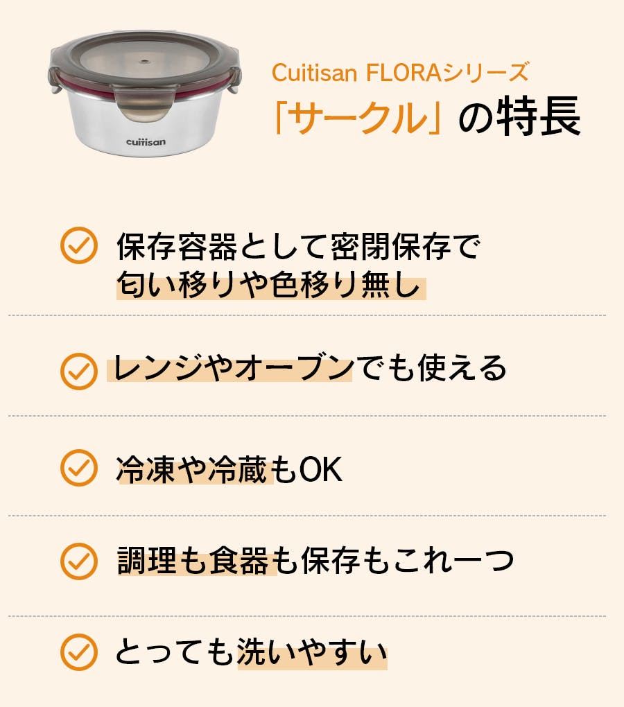 FLORAシリーズ「サークル」なら、丈夫で保存⇒調理⇒盛り付けが1つの器で完結。